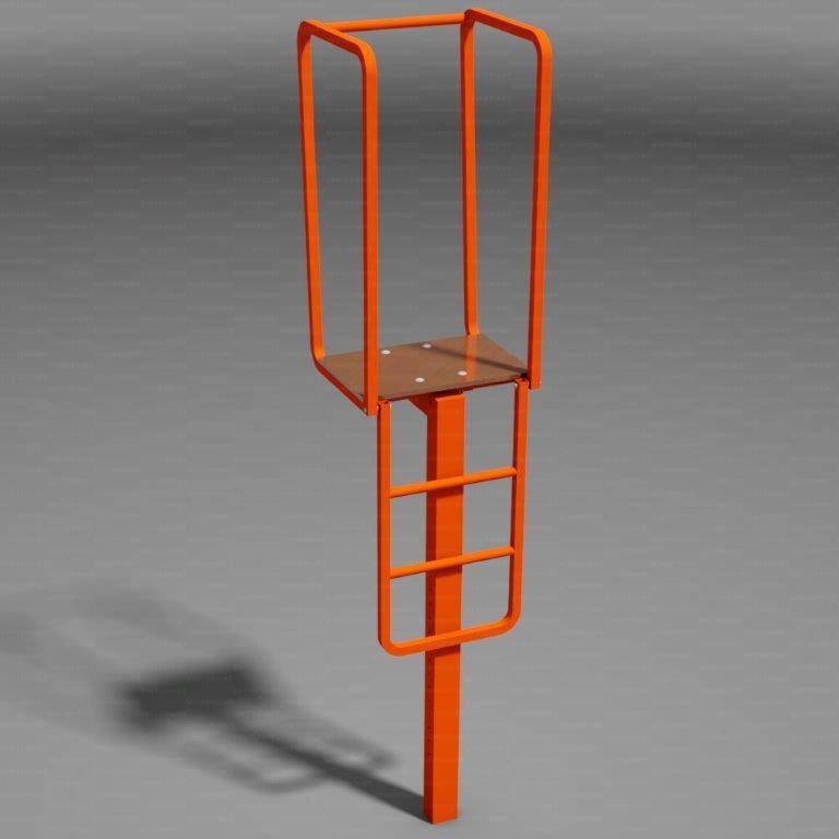 Sodniški sedež iz enojnega aluminijastega stebra. Ograja je kovinska, pod pa lesen. Sedež je nastavljiv po višini. Zaščita je dobavljiva posebej.