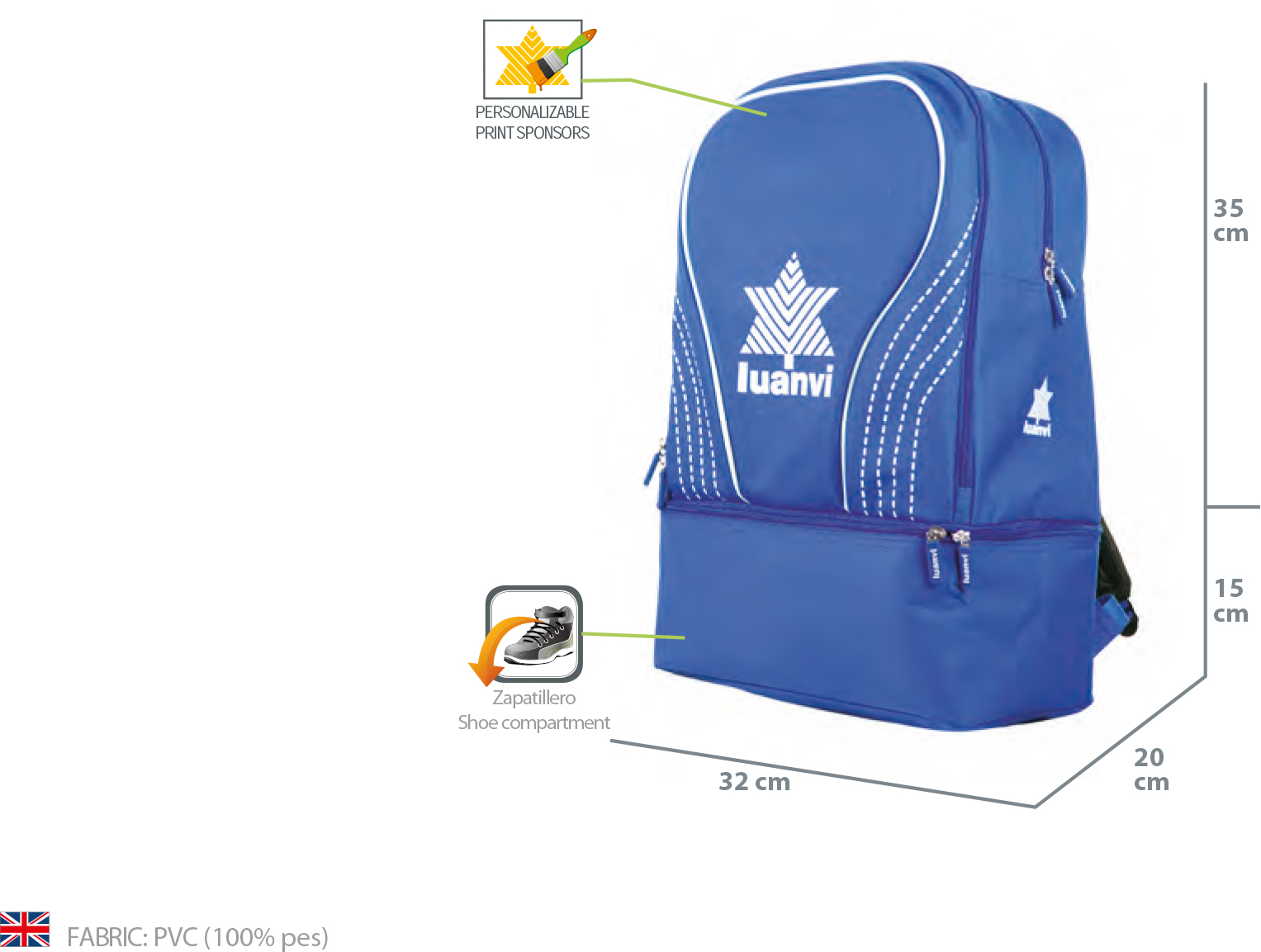 Funkcionalen nahrbtnik z dvojnim dnom, kamor lahko spravimo športne copate.